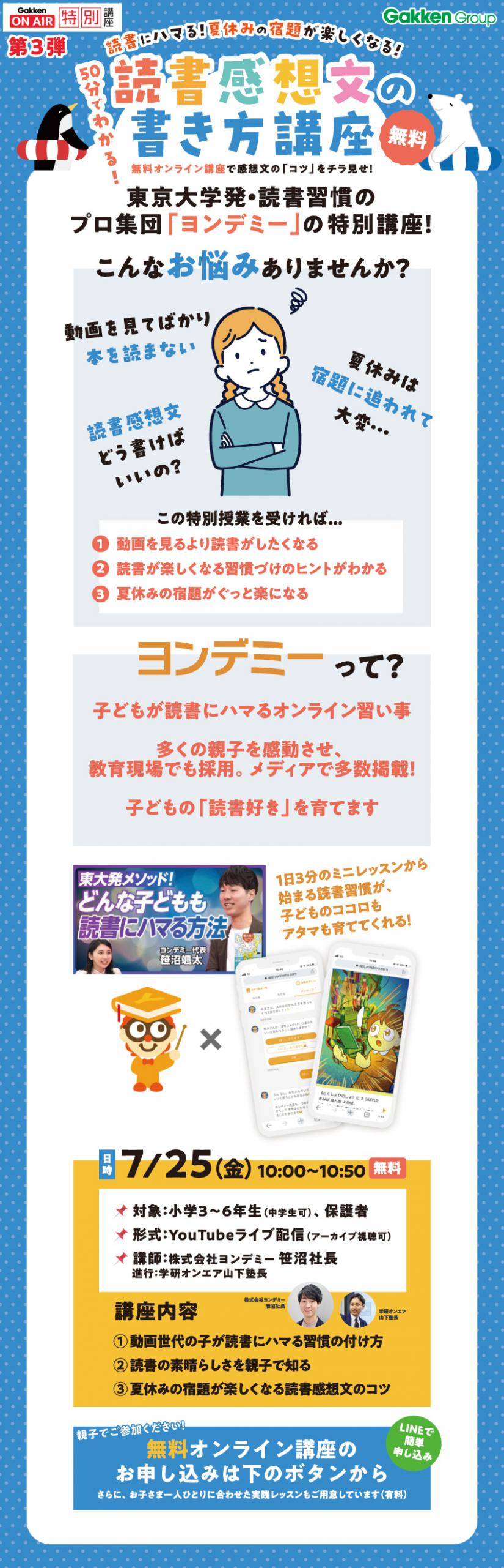 [小3~6対象]Gakken ON AIR特別オンライン講座 50分でわかる読書感想文の書き方講座 参加者募集!
