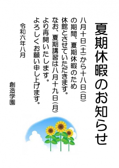 エディックは8/10(土)~8/18(日)までお盆休暇となります。