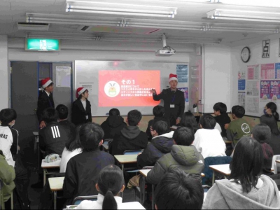 小学生、中学生に2学期お疲れ様という意味を込めてクリスマス会を行いました!!