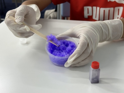 吸水性ポリマーは紙おむつなどに使用されていて、実際に紙おむつがどれだけの水分を含むことができるのかを調べたり、吸水性ポリマーについて学んだあとは吸水性ポリマーを使った芳香剤づくりに挑戦しました。