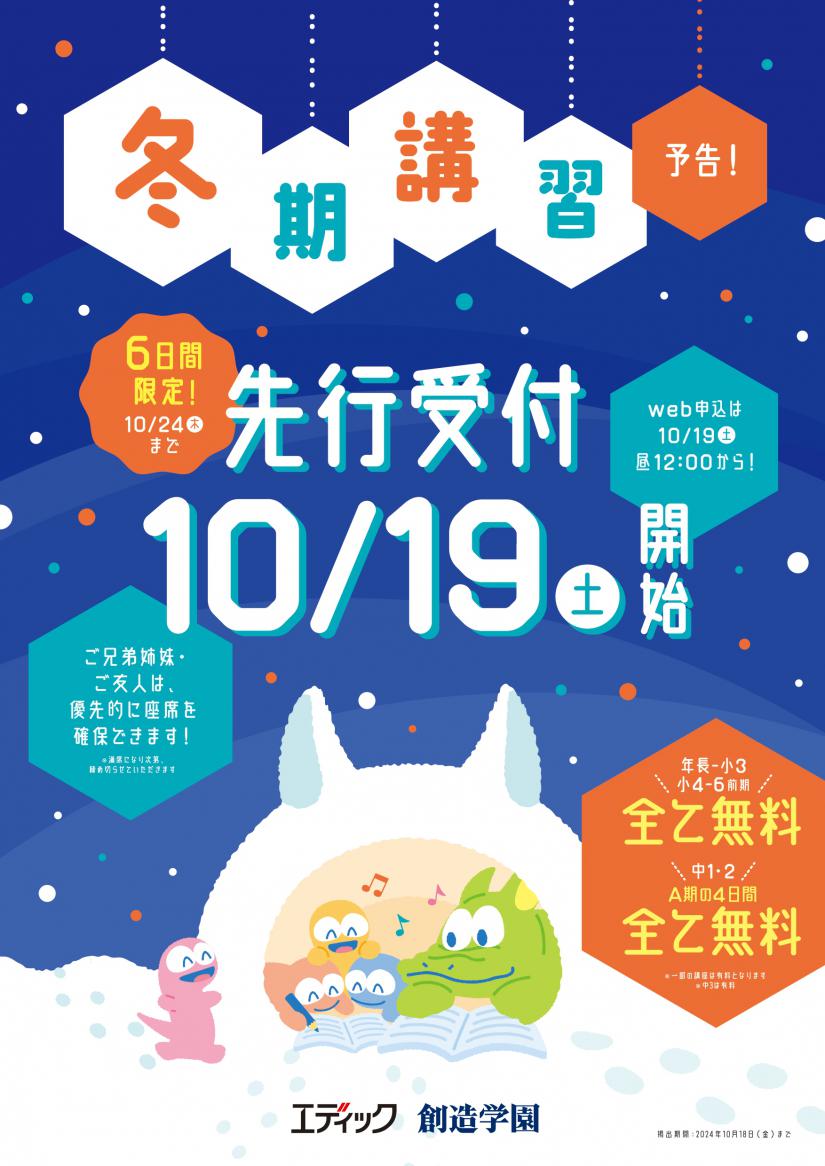 2024年度冬期講習の先行受付が10月19日(土)12:00より開始されます。