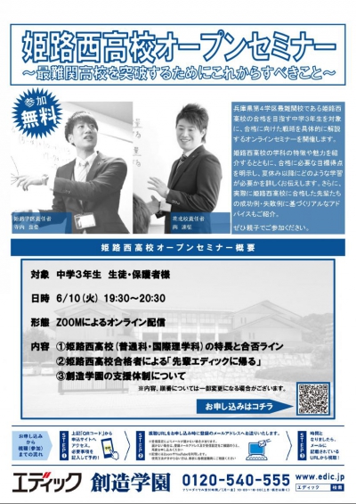 【中3】姫路西高校オープンセミナー ~最難関高校を突破するためにこれからすべきこと~ 実施決定!!
