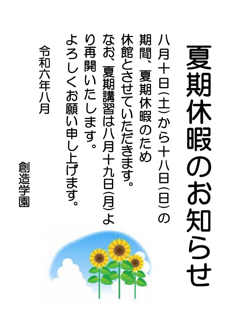 なお、8月19日(月)午前10時より受付ならびに授業を再開いたします。