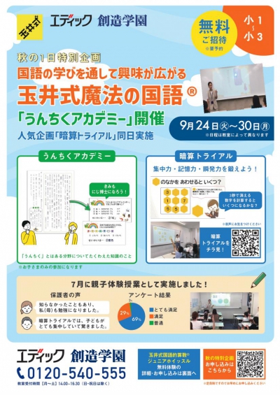 ★ジュニアわくわくスペシャルウィーク 玉井式魔法の国語無料体験★