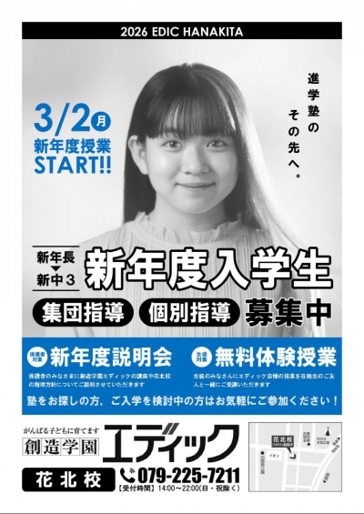 現在、エディックでは3月から始まる新年度に向けて「新年度説明会」と「無料体験授業」を実施しています。