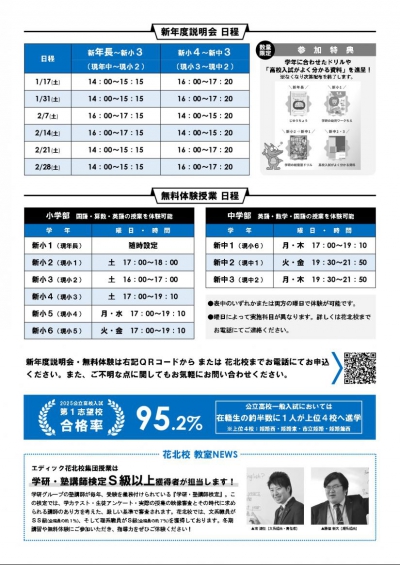 保護者対象の「新年度説明会」ではエディックの講座や花北校の指導方針についてご説明いたします。