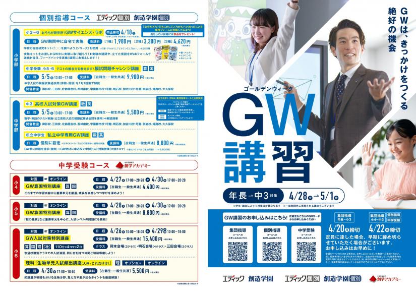 そこでエディックではGW期間【4/28(火)~5/1(金)】に「GW講習」を実施します!