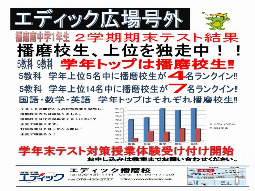 エディック播磨校では2月中旬から下旬にかけて各中学校で実施予定の学年末テストに向けてのテスト対策が始まっています!