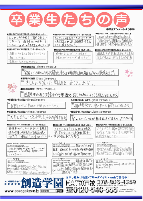 長田高校の阪大推薦の3人のうち2人がHAT神戸校の卒業生!