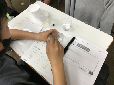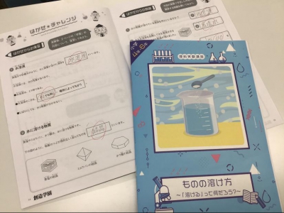 今年度最初の実験となる今月は、水溶液についてでした。物質や水の温度による溶け方のちがいをキットを使って実験しました。