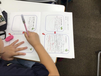読書感想文の構成の考え方を学び、実際に「まとめシート」を使いながら、文章構成を考えました。読書感想文を書く過程で、自分の考えを整理して文章で表現する良い経験になり、読解力向上にもつながっていきます。