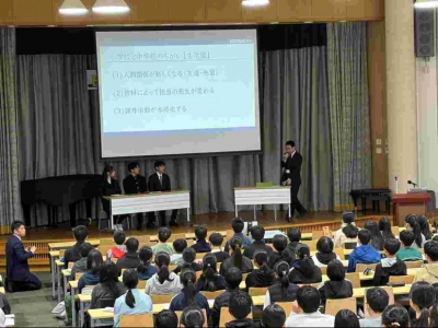 もあります。そこで、中学校生活を“楽しく”迎えられるように必要な意識や学習法を伝え