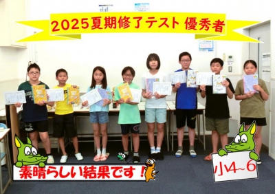 まずは、夏期講習最終日に実施した『修了テスト』の上位者を表彰。