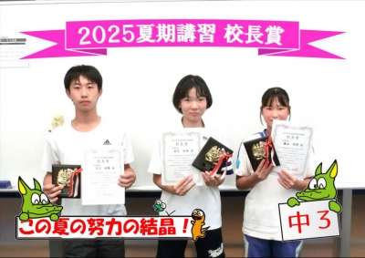 夏期講習で優秀な成績を修めたみなさんに