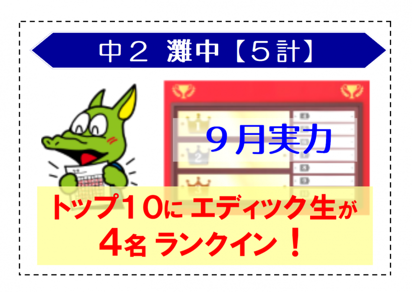 中2灘中 トップ10にエディック生が4名!【9月実力テスト結果⑥】