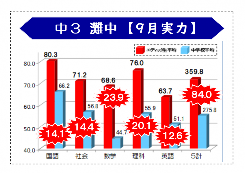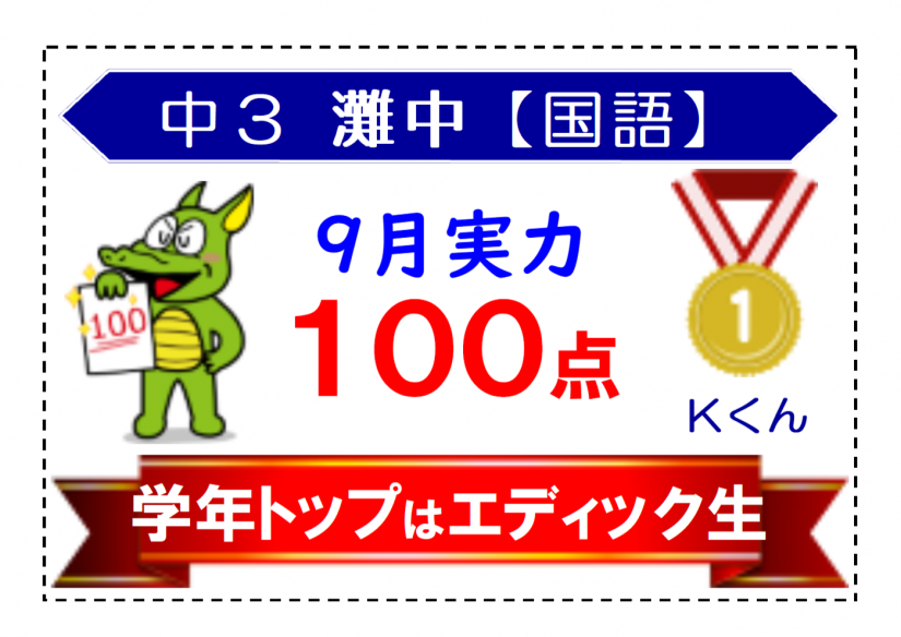 中3灘中 理科・国語100点満点はエディック生!【9月実力テスト結果④】