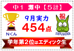 中1灘中 学年第2位はエディック生!【9月実力テスト結果③】