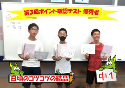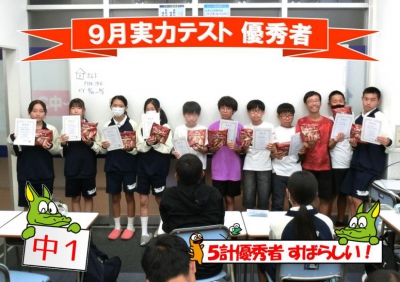 中1生も、9月の実力テスト・8月模試・英単語王の優秀者。