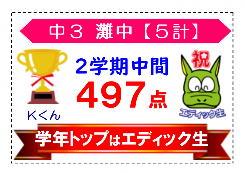 中3灘中 エディック生がの過半数が上位20%に!【2学期中間テスト結果速報】