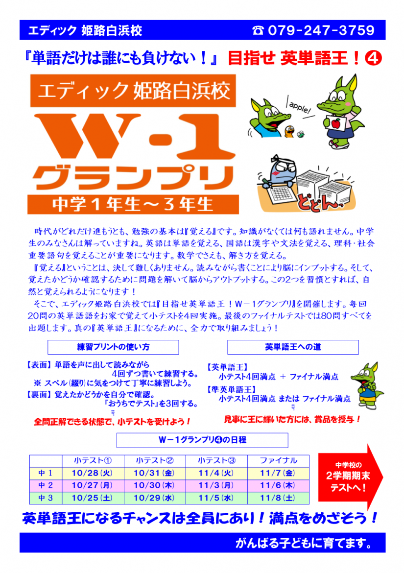 絶賛開催中!【中1~3 英単語W-1グランプリ2学期②】