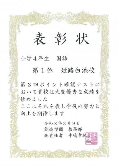 ポイント確認テスト 国語全校第1位!