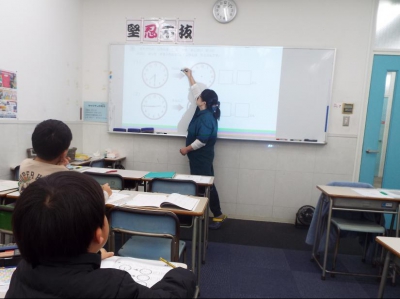 低学年の授業は、アニメーションと文章が連動した「玉井式国語的算数教室」を全面導入。