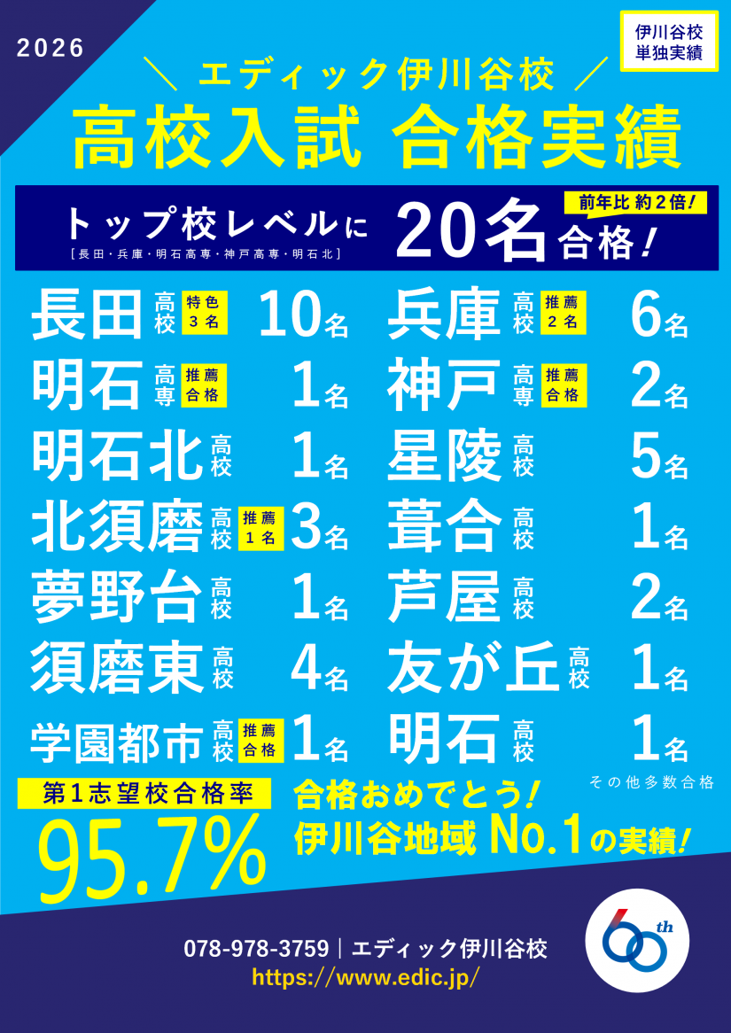 2026高校入試合格実績!エディック伊川谷校は圧倒的地域No.1!