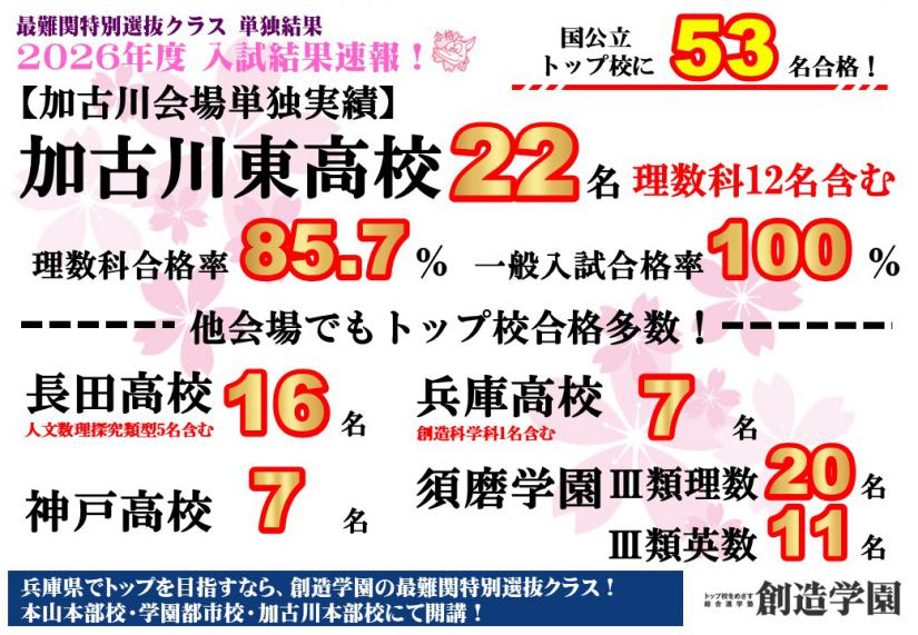 【加古川NEWS】最難関特別選抜クラス入試結果
