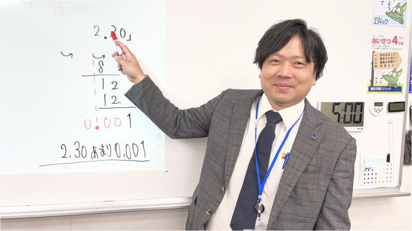 また、職員対象の研修では2年連続で最優秀職員として表彰されるなど、指導力はトップクラス。現在は若手職員の研修官として、研修部でも活躍している。大きな身体と優しい性格で、子どもたちからの人気も高く、丁寧な教科指導だけでなく、生活指導に至るまで熱心に実践させる手腕は保護者、生徒からの信頼を集めている。