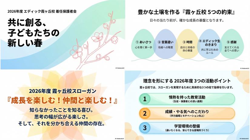エディック霞ヶ丘校の新たな責任者となった林田より、教室の方針をお伝えする着任保護者会を実施いたしました。