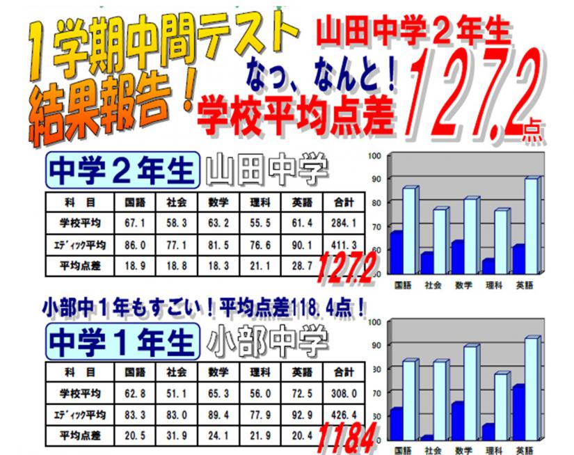 新しく導入したテスト対策で早くも効果がでました!ぜひ写真を見てください。小部中、山中でうれしいうれしいの好結果が出ました!!