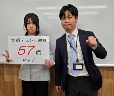 ・5教科合計で前回より57点アップ!
