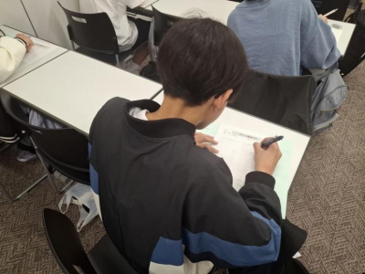 ここまで約1か月半、新学年内容を動画での予習、授業での難問解説、そして宿題といった学習で鍛えてきました。このポイント確認テストは、「どの程度自分の身についているか」がはっきりと表れる、ある意味シビアなテストです。合格点に届かなかった場合は追試も実施されます。中学1年生にとっては中学部初のポイント確認テストとあって、開始前からいつもと違う緊張感が教室に漂っていました。