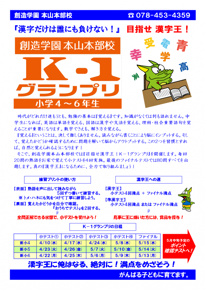 国語力アップは漢字から!【小4~6 漢字王K-1グランプリ開催中】