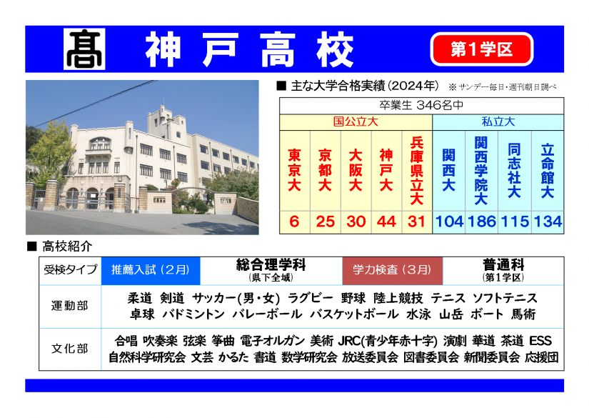 目指せ志望校2024④【神戸市・芦屋市内の公立高校】