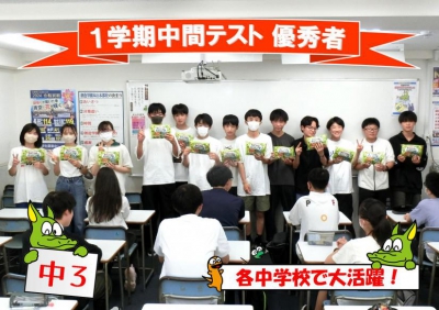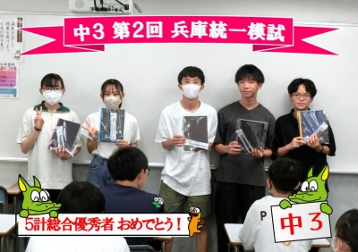 中3生の1学期前半の表彰を行いました。
