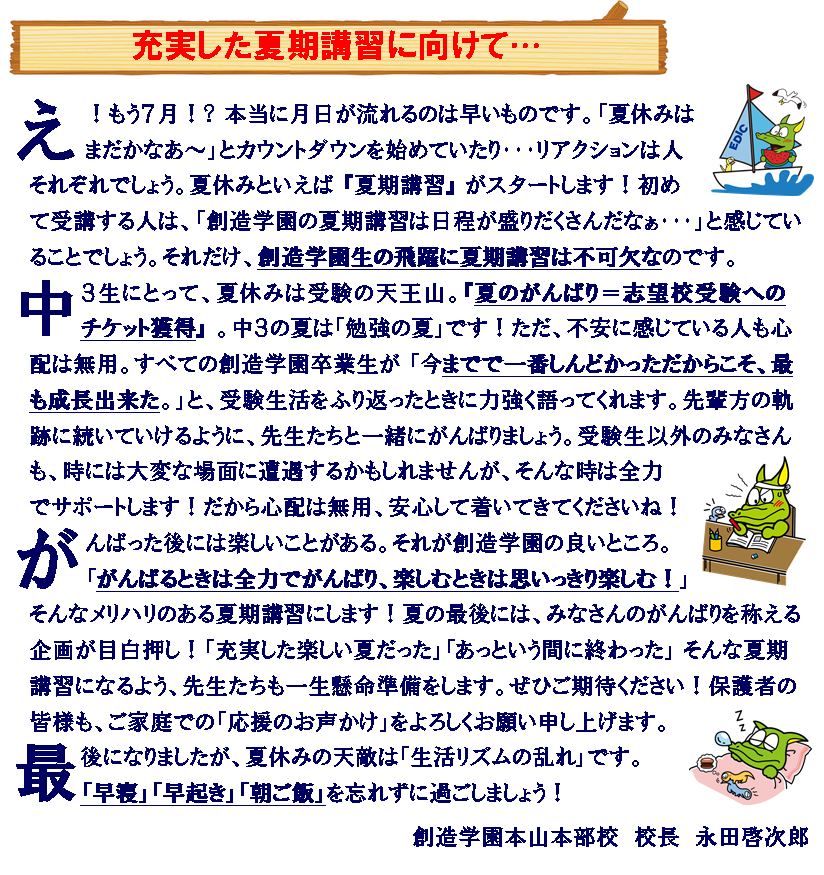 永田校長の熱き想い!【創造学園広場7月号巻頭言】