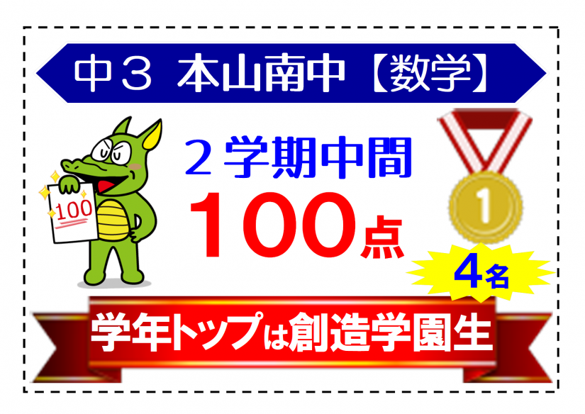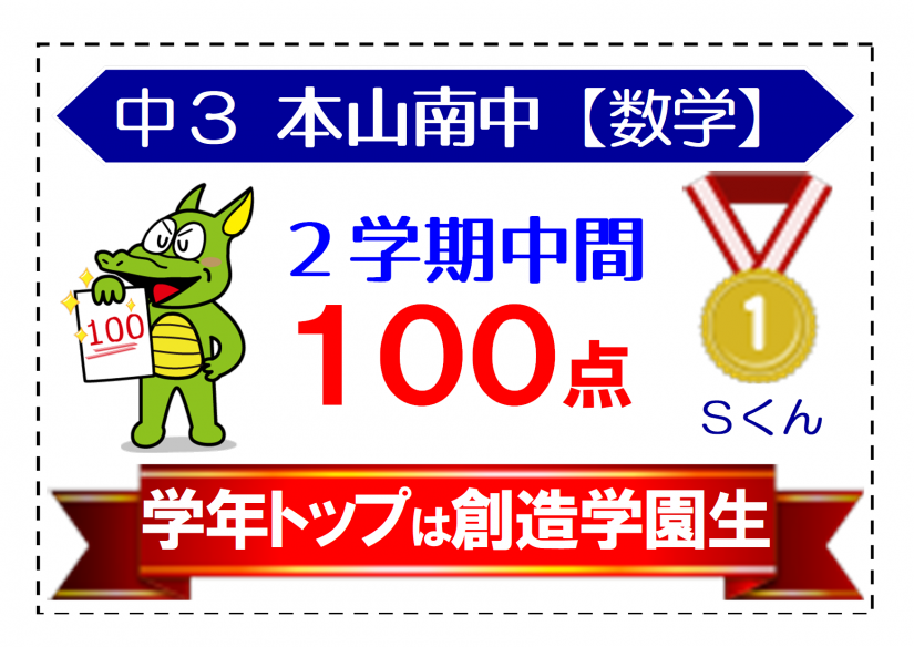 中3本山南中 数学トップ 100点満点4名は創造学園生!