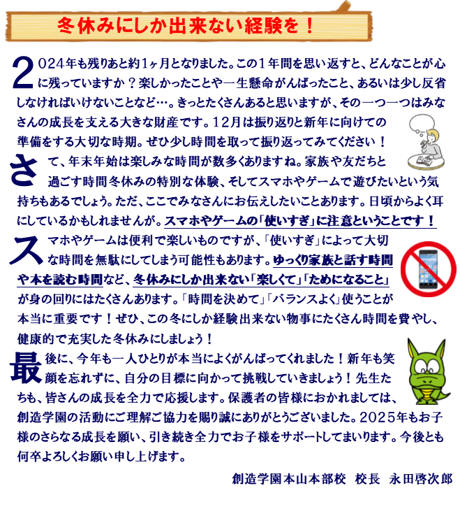 永田校長の熱き想い!【創造学園広場 12月号巻頭言】
