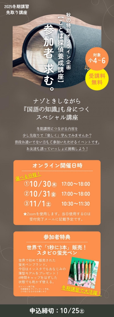 【小4~小6】国語で謎解き!? 秋の特別企画を実施します!!