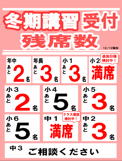 冬期講習のスタートまであと10日となりました!
