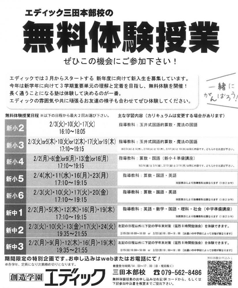 この機会にぜひエディックの授業をご体験ください!
