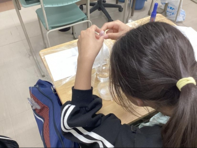 今回のテーマはものの溶け方や水溶液の濃さ、溶解度について学習しました。水に食塩を混ぜて実際に溶かすことで、ものがどのように溶けるのかを目で見て理解することができました。