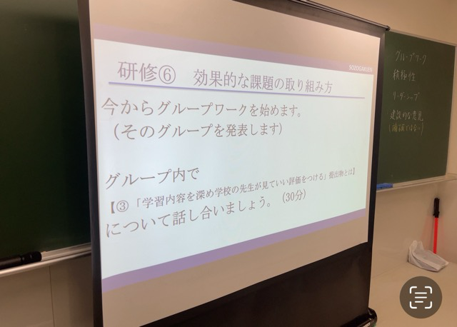 昨日のテストや勉強は個人で頑張ったものですが、本日は課題の取り組み方や提出物の書き方を各グループで話し合いました。