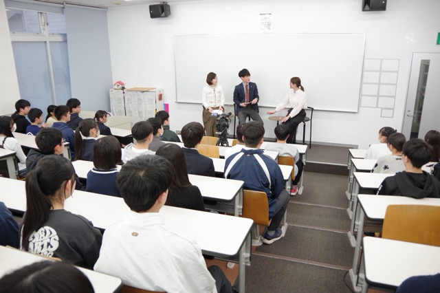 生徒の皆さんも緊張していましたが、しっかり聴き、質問コーナーでも様々な質問が出ました。