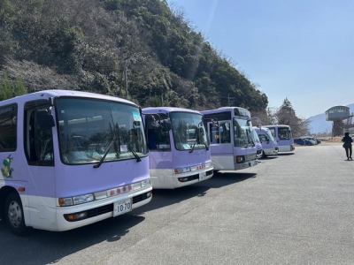 バスの車内では寝ている子も多くさすがに疲れた表情も。