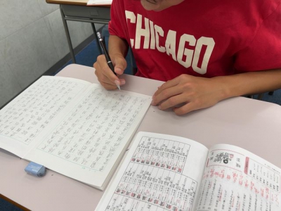 期末テスト直前、国語の前日には「百字帳」を希望者にプレゼントし、「とにかく書いて慣れる!」