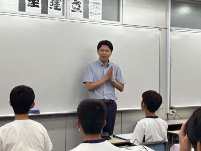 この日は、夏期講習より新たに西神南校の特別顧問として着任したレジェンド・木谷(歴代で最も長く西神南校の校長を務めた先生)からも激励の言葉をいただきました(^^)/