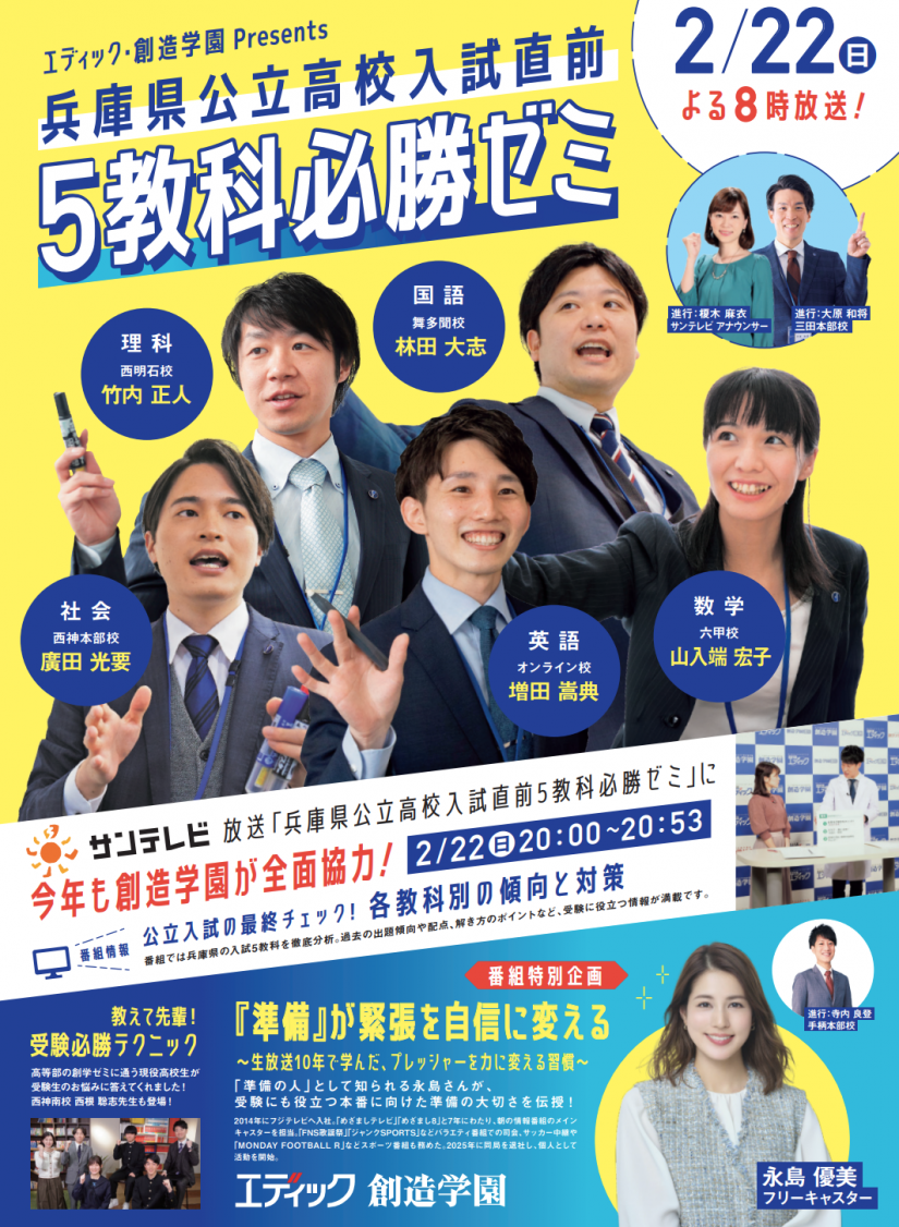 【2/22】兵庫県公立高校入試直前 5教科必勝ゼミ サンテレビで放送!
