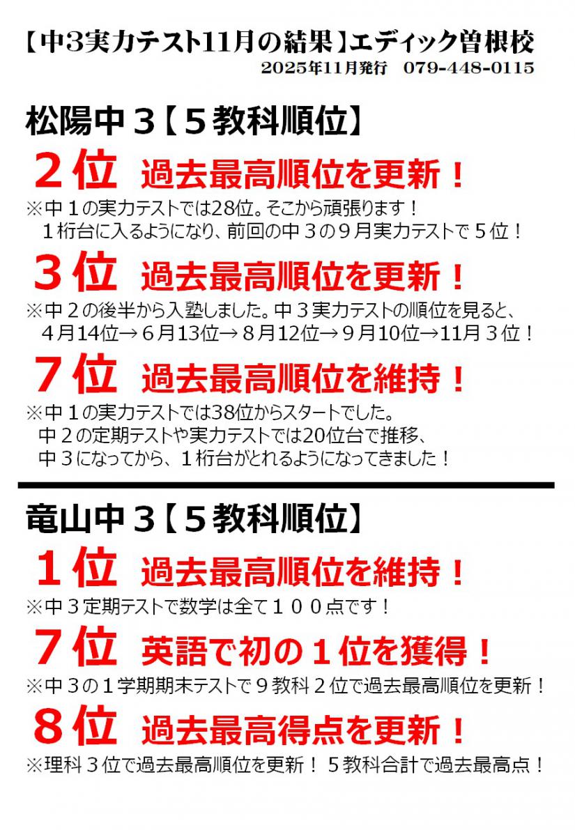 中3実力テストで過去最高の結果!